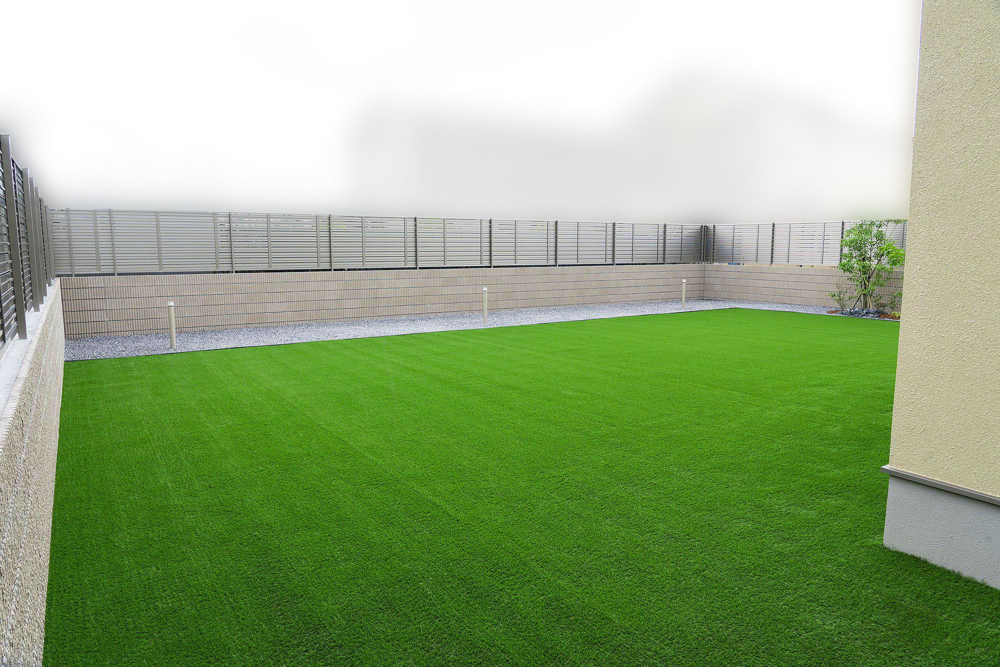新築の個人宅のお庭に人工芝を施工させていただきました。