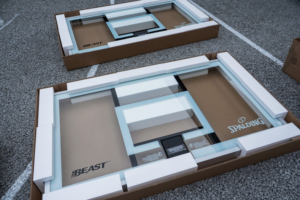 「ザ・ビースト」は、プロフェッショナルレベルの試合でも使用される強化ガラス製のボードを採用したSPALDINGの最上級モデル。家庭用として販売されていますが、数種のサイズのレンチを使用し、またパーツのサイズ・重量が大きいため、実際には広いスペースと2〜3名以上での組み立てが必要となります。ご自宅のお庭やプライベートコートに設置をご検討の方は、ぜひご依頼ください。